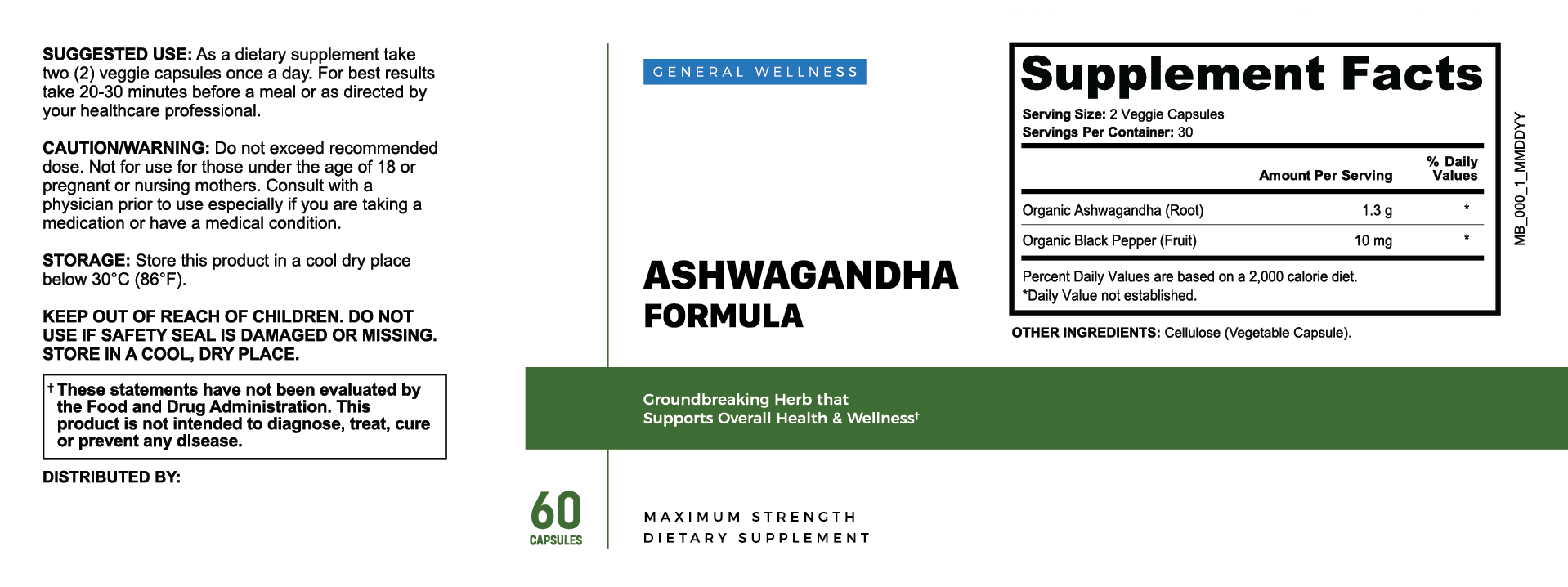 Ingredients For Ashwagandha Formula (1 Bottle (60 Capsules))