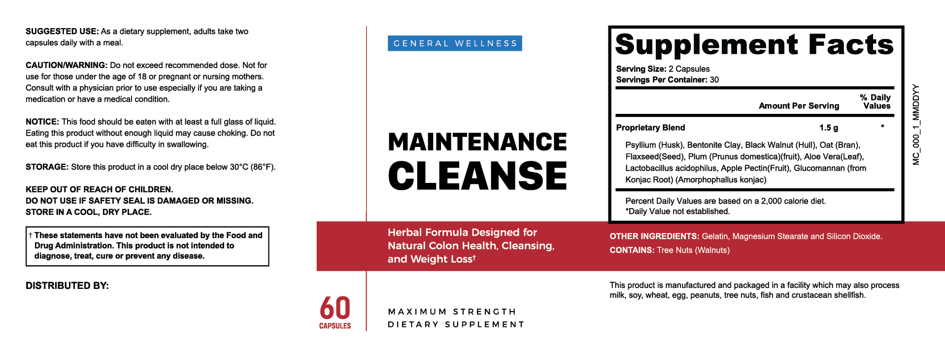 Ingredients For Maintenance Cleanse (1 Bottle (60 Capsules))