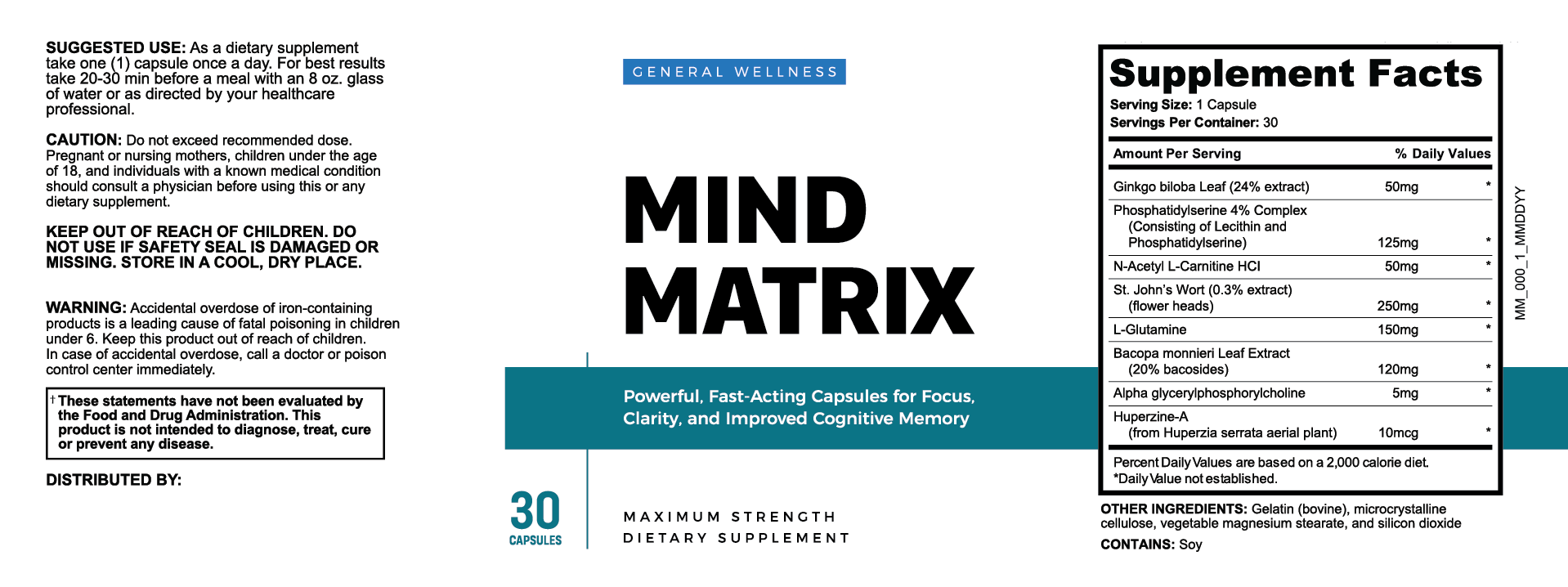 Ingredients For Mind Matrix (1 Bottle (60 Capsules))