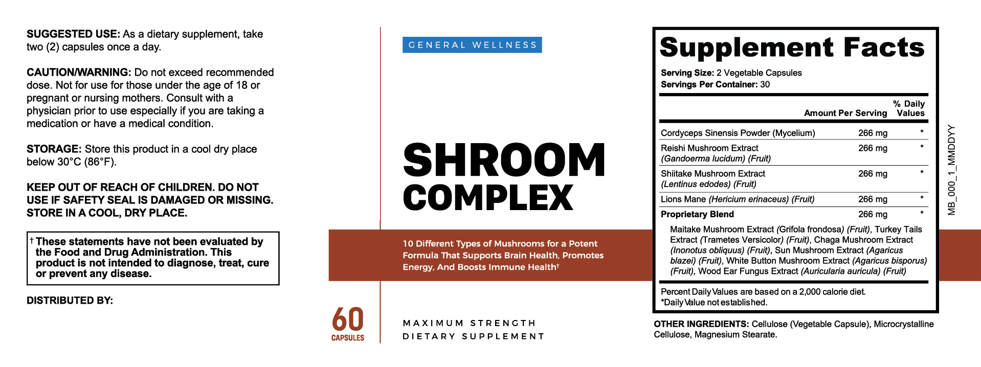 Ingredients For Shroom Complex (1 Bottle (60 Capsules))